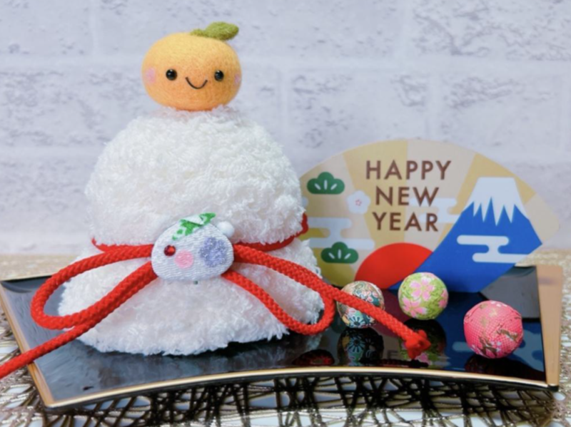 お餅を重ねて、タッセルリボンやみかん、手毬などお好きな飾りをつけて完成!