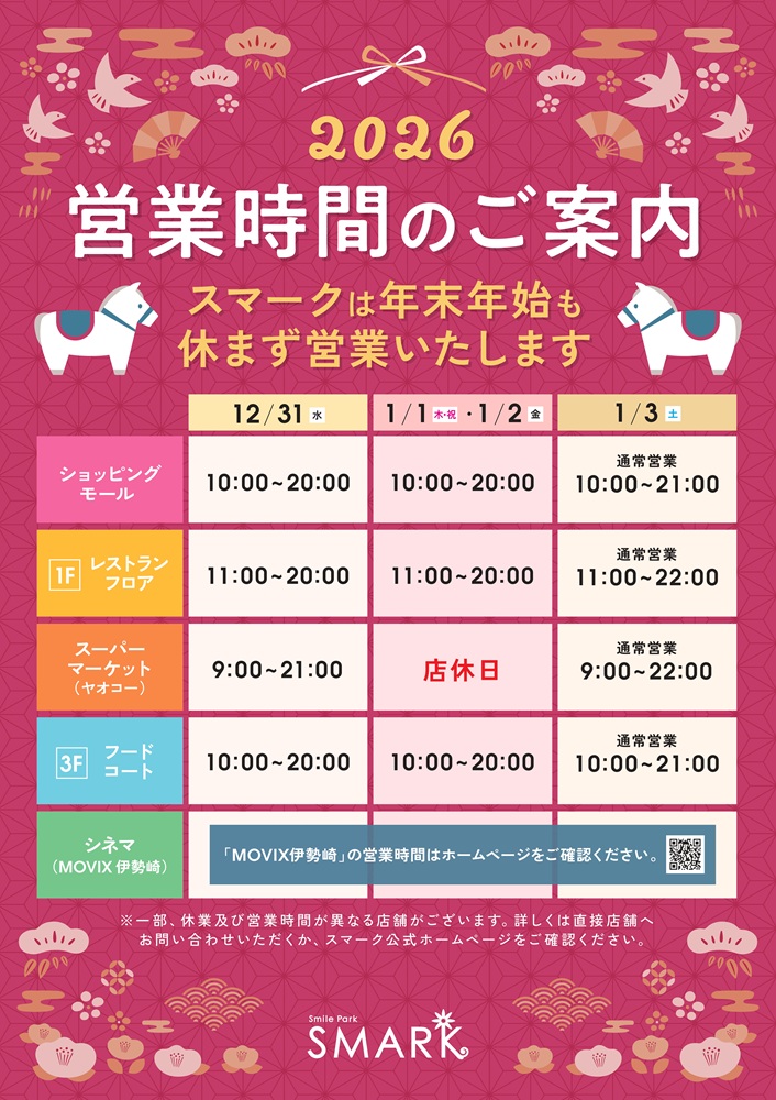年末年始の営業時間は下記の通りとなります。