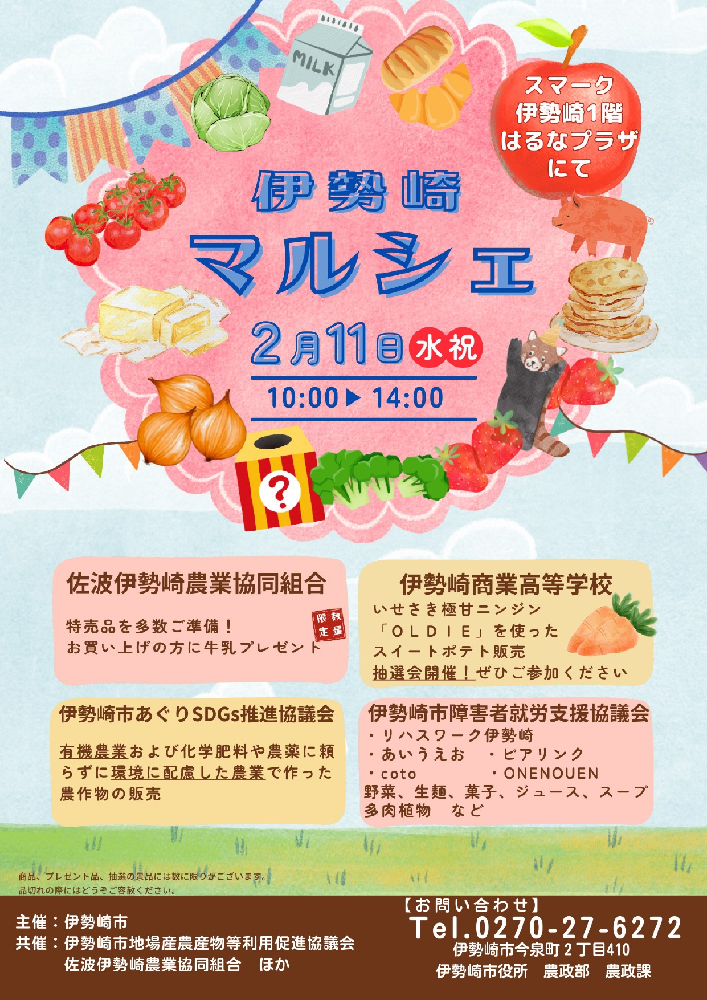 地場産農畜産物の普及のため、市・JA佐波伊勢崎・農業に関係する団体が協力してマルシェを開催します。