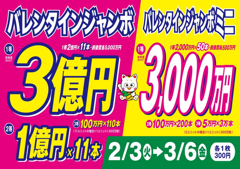 1等・前後賞合わせて3億円!の『バレンタインジャンボ』