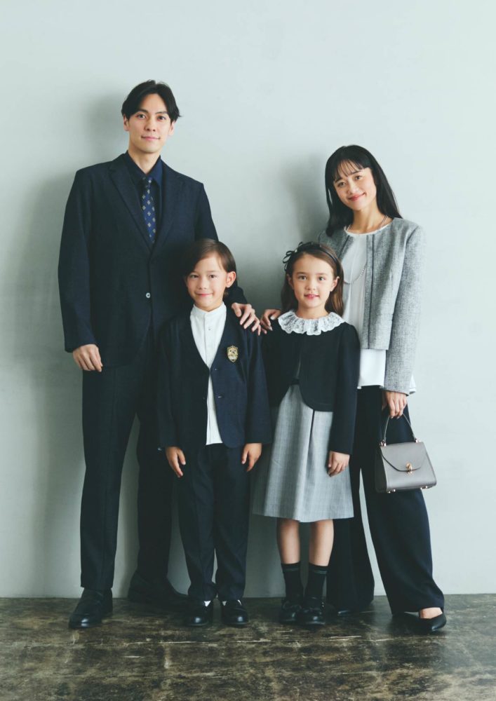 正統派ネイビーがベースなら家族みんなで凛と華やぐ。